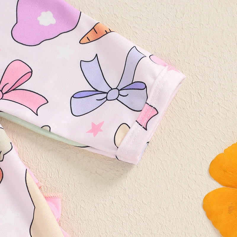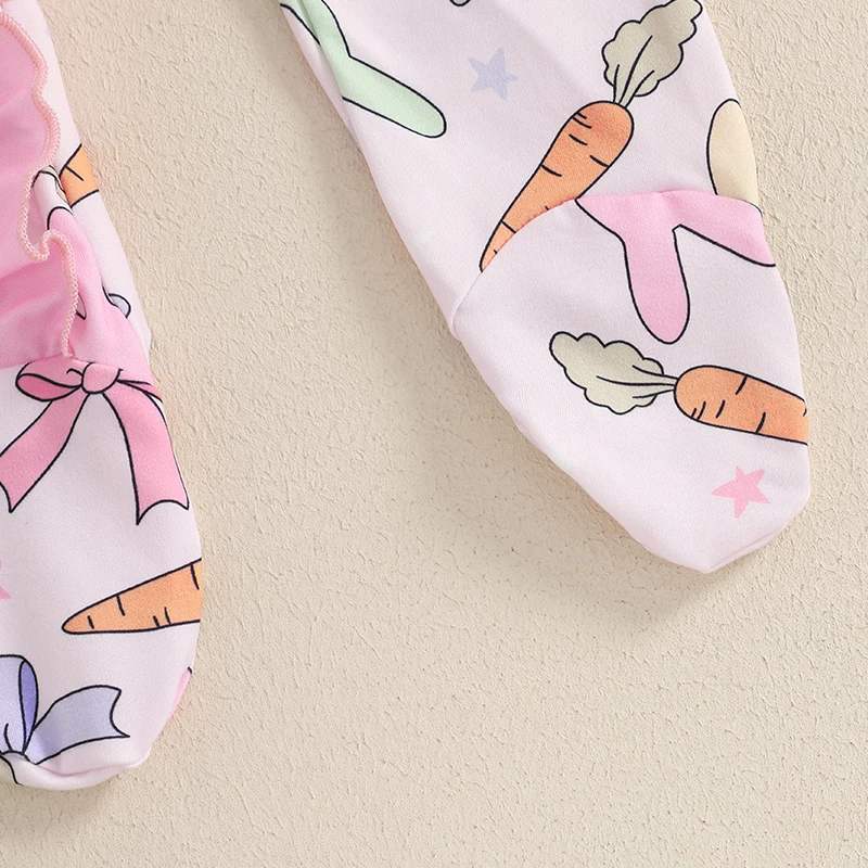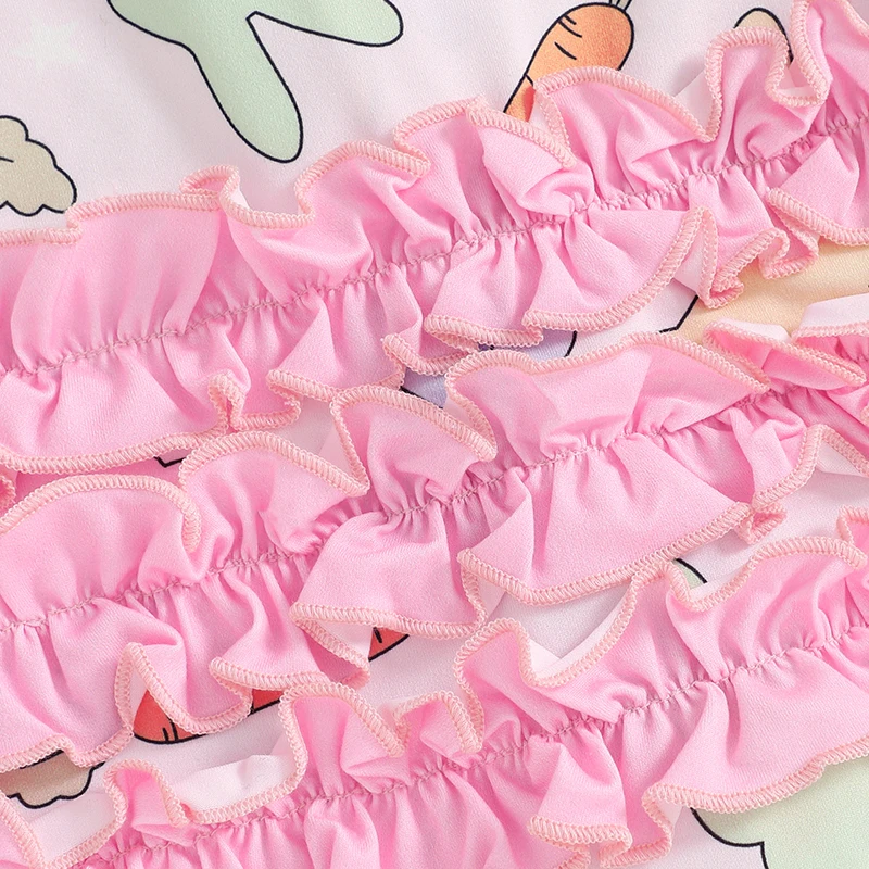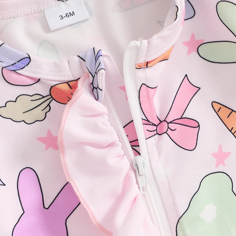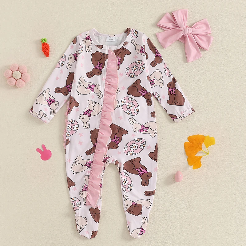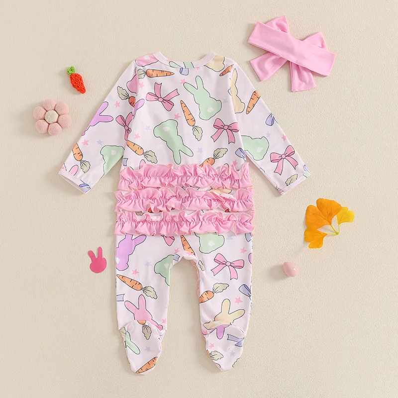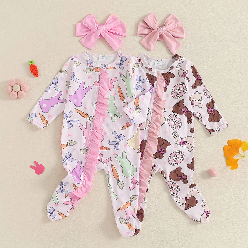 Baby Girl 2Pcs Easter Outfits Ruffle Long Sleeve Zip Up Jumpsuit with Headband Set Newborn Clothes